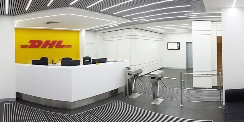 Разработка интерьера зоны рецепции офиса компании DHL.